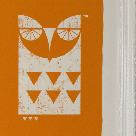 'Owl' is a new hand pulled, limited edition print that looks set to be popular. He's a brilliantly bright orange, brighter, lighter and sunnier than we could capture here !